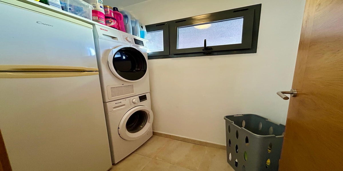 En el piso inferior, se encuentran dos dormitorios de buen tamaño, uno de ellos con baño en suite. También hay un baño familiar y un cuarto de lavandería para mayor comodidad.