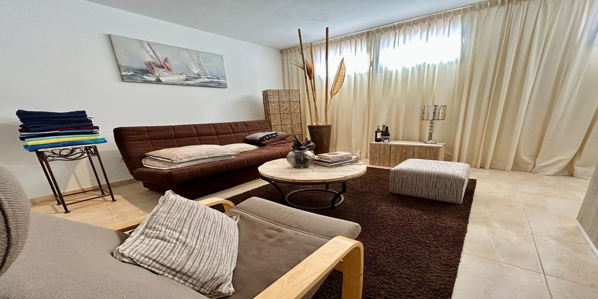 El nivel más bajo cuenta con un gran salón, perfecto para relajarse, además de otro dormitorio con baño en suite y un espacio exterior privado.