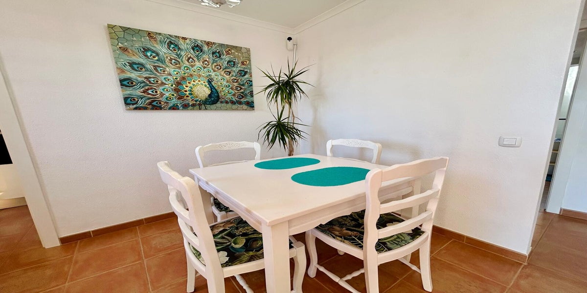 Se encuentra en una urbanización tranquila, con buen entorno vecinal y cercana a supermercados, restaurantes, zonas de ocio, campo de golf, playa y todos los servicios esenciales.