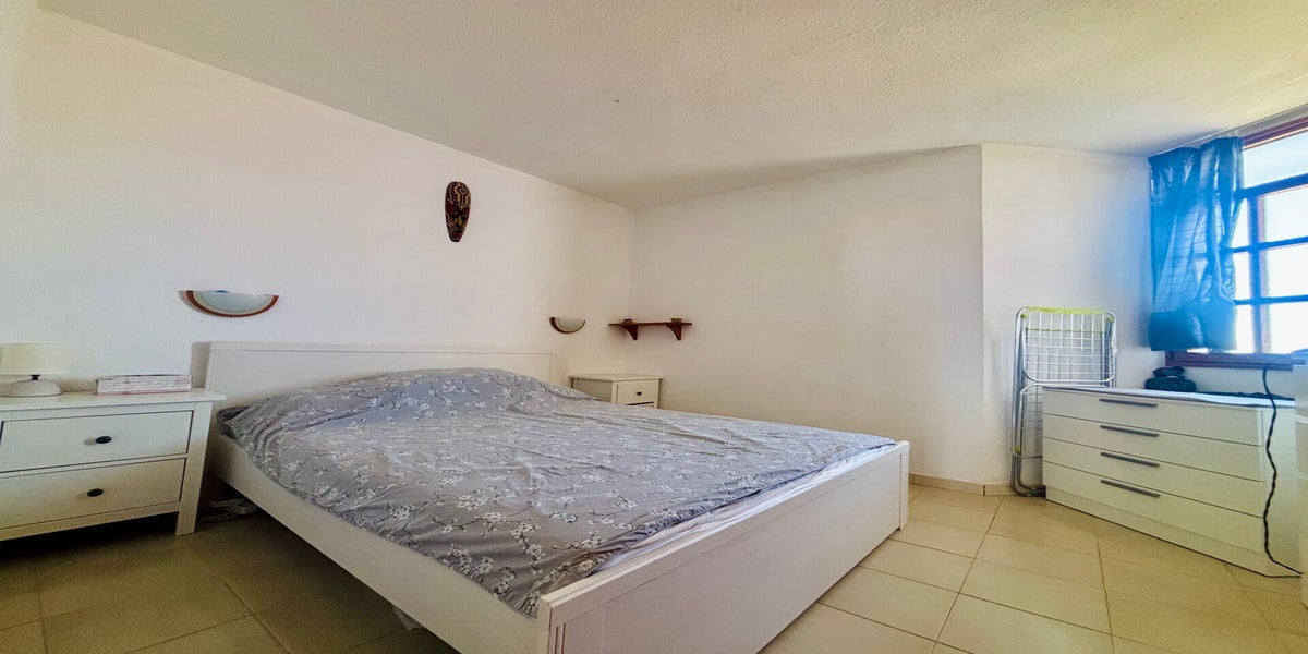 The apartment features a bright open-plan living and kitchen area, a double bedroom with fitted furniture, and a full bathroom. From the private terrace, enjoy lovely sea views and plenty of sunshine – an ideal spot for outdoor dining or relaxing.