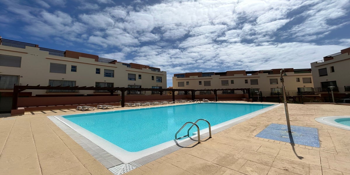 La propiedad forma parte de una comunidad bien cuidada con piscina, proporcionando un entorno seguro y agradable para los residentes.