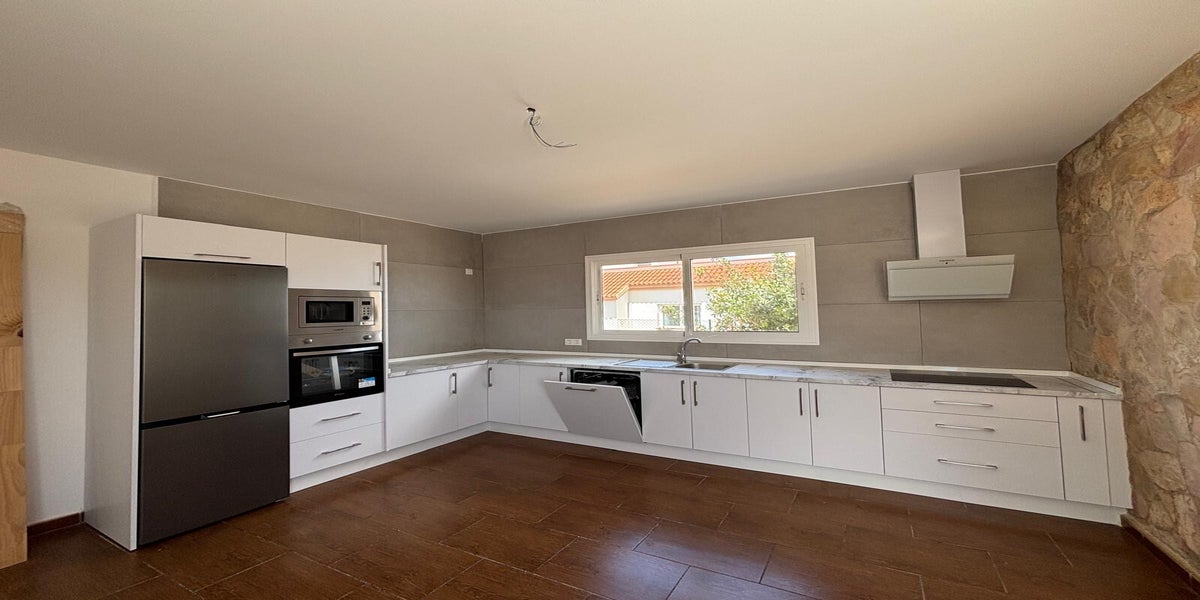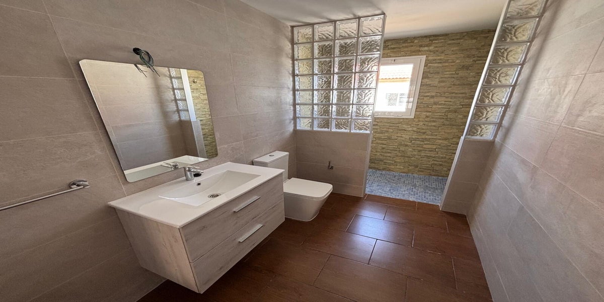 La villa dispone de una cocina totalmente nueva y equipada, ideal para disfrutar cocinando y recibiendo invitados, además de un baño familiar con bañera de esquina y un amplio baño con ducha a ras de suelo.