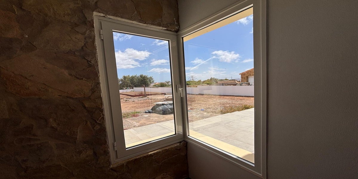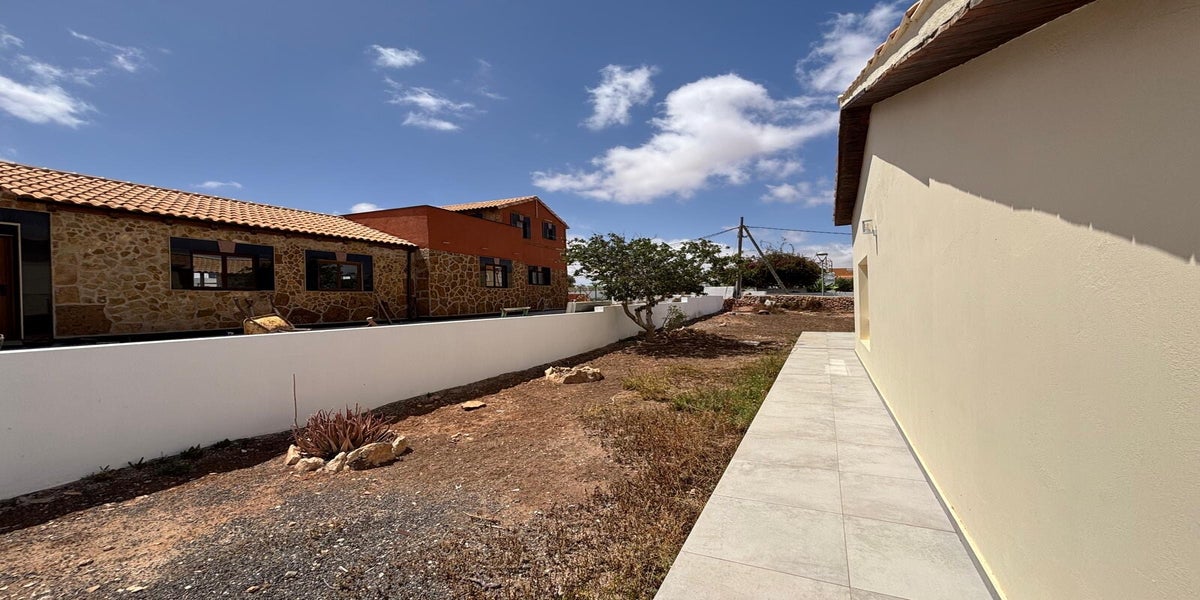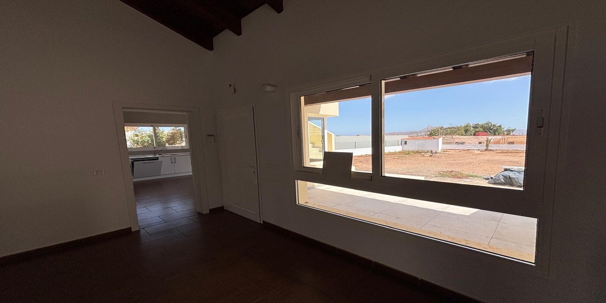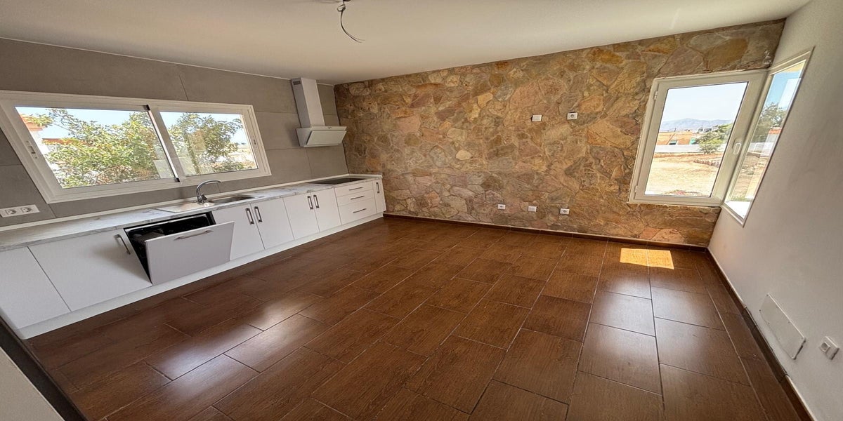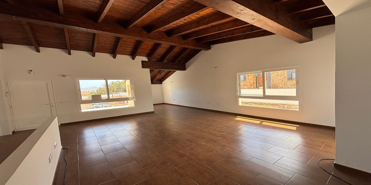 Con una superficie construida de 128 m², esta vivienda ofrece el equilibrio perfecto entre confort moderno y encanto tradicional canario. El luminoso salón-comedor cuenta con techos de madera abovedados, creando un ambiente cálido y acogedor que se extiende a dos de los tres amplios dormitorios dobles.