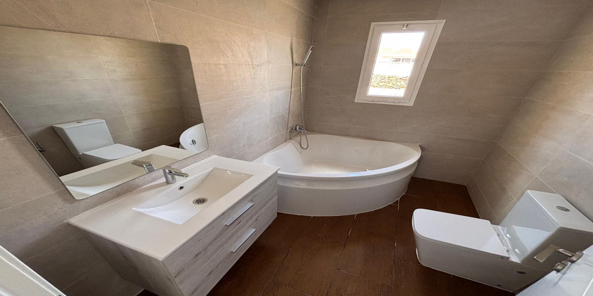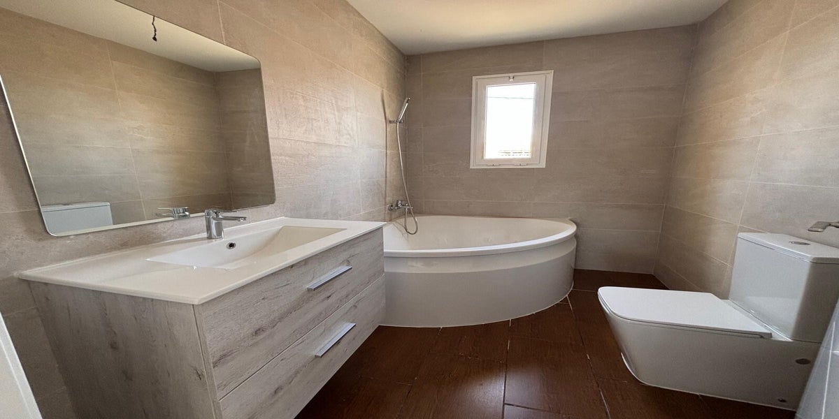 The villa boasts a brand-new fitted kitchen, perfect for cooking and entertaining, along with a family bathroom with a corner bath and a large walk-in shower room.